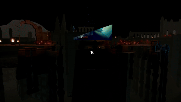 This is the default option when toggling Can Be Anchored, this will take a screen player’s camera and frame it in front of the canvas while occluding any objects in front, including players. This mode also lets you use your watch while anchoring, but will unanchor you if you open your watch while anchored. You can exit anchor mode by pressing the exit button on your platform, or clicking on the edges outside of the canvas. We recommend this mode for more important menu UIs, or entire games.